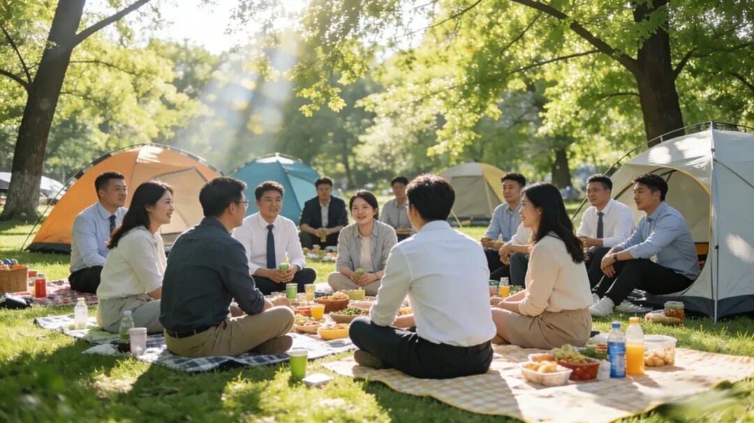草坪露营野餐:佳略咨询精选优质草坪场地,搭建帐篷、布置野餐场景,无需企业费心筹备,让团队在轻松氛围中分享美食、增进情谊,轻松出片。